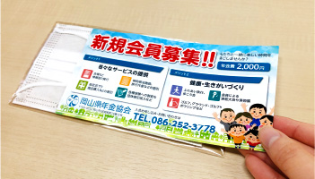 マスクに封入する印刷物をさまざまに工夫することできるので、実施するプロモーションに合わせてお選びください。